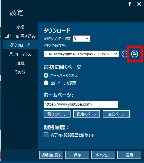 このページではダウンロードした動画の保存先を開く方法と、保存先の変更方法をご紹介します。