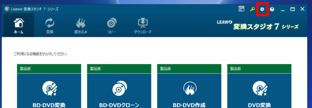 変換スタジオ7 シリーズ右上の歯車マークをクリックします。