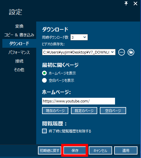 変換スタジオ7 シリーズで、ダウンロードした動画の保存先は