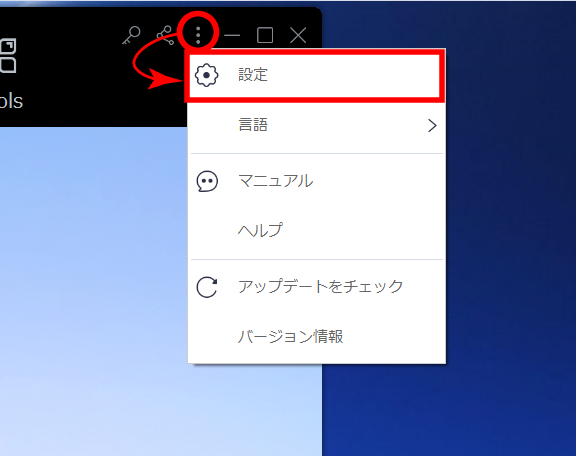 1)設定画面を開く