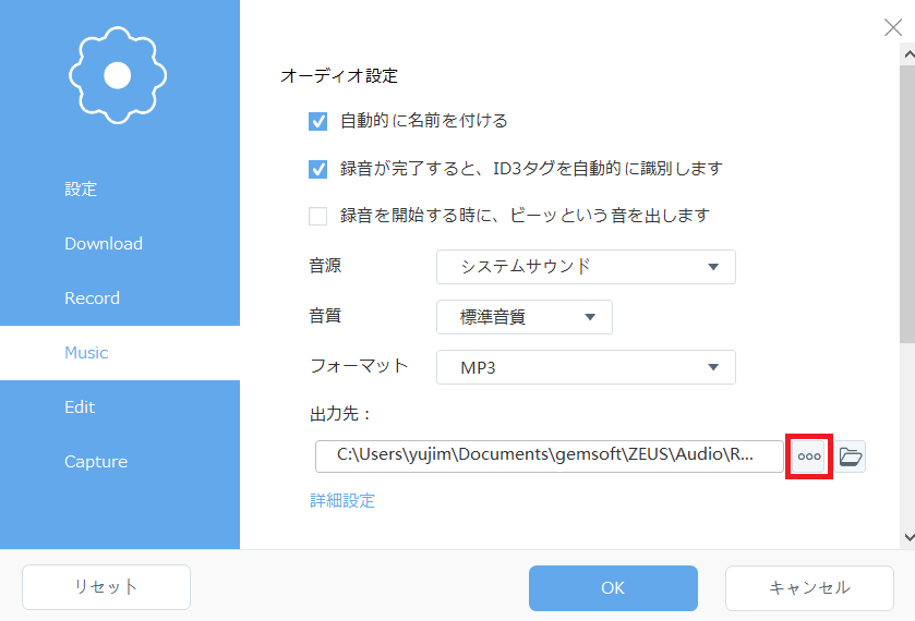 ZEUS MUSICで録音した音楽ファイルの保存先の確認方法と変更方法は以上となります。