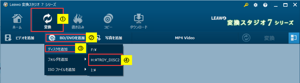手順1 :BD/DVDの取り込み
