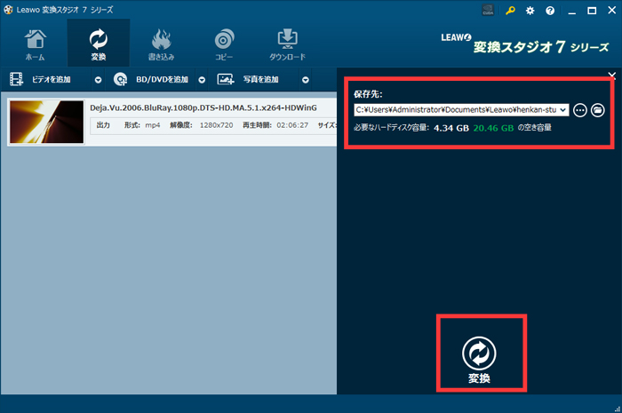 保存先を設定し、「変換」ボタンをクリックして変換を始めましょう!