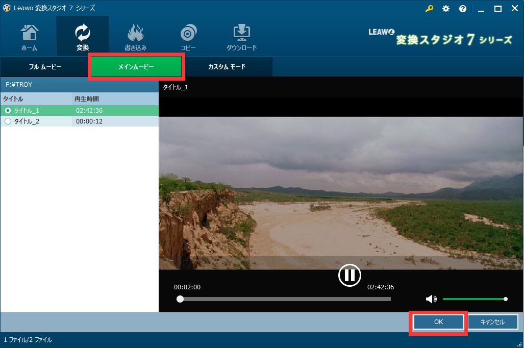 ここでは「メインムービー」モードを選択します。選択した後は「OK」ボタンをクリックします。