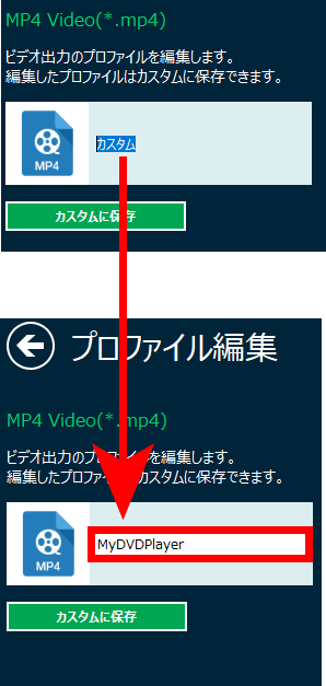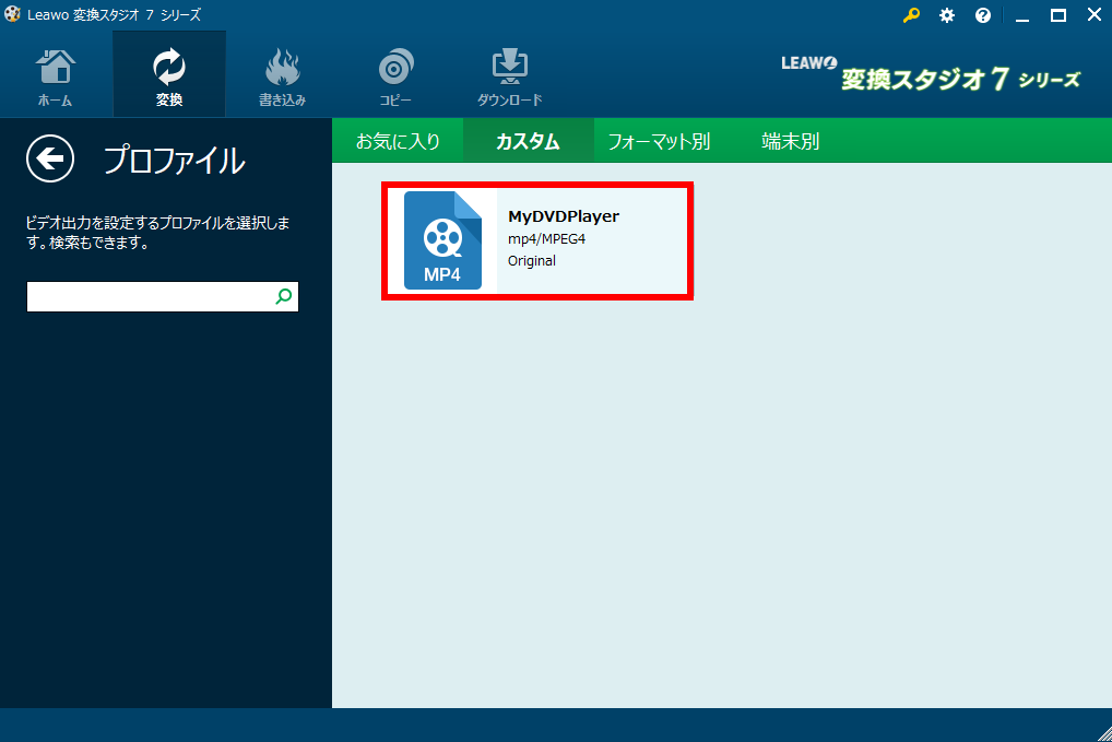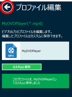 「MyDVDPlayer」をクリックすると保存したプロファイルに変換する形式を変更できます。