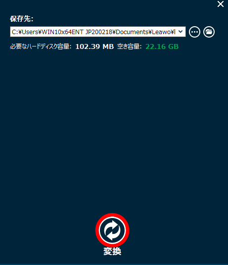 保存先を設定して、「変換」ボタンをクリックすると変換が始まります。