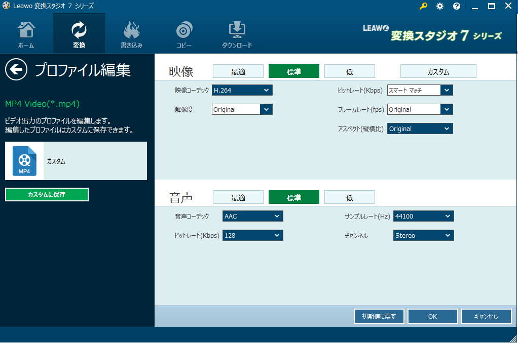 「カスタムに保存」をクリックしてプロファイル編集内容を保存します。