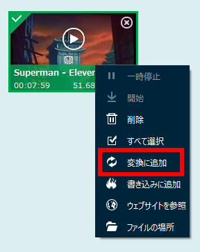 「変換に追加」をクリックすると、動画を変換することができます。