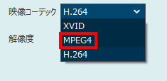 映像コーデックを「MPEG4」に設定します。