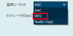 音声コーデックを「MP3」に設定します。
