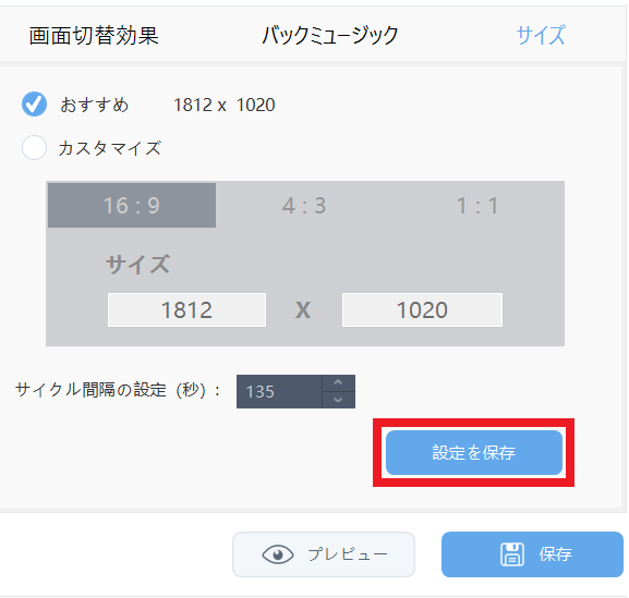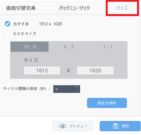 「おすすめ」もしくは、「カスタマイズ」から解像度の指定を行います。