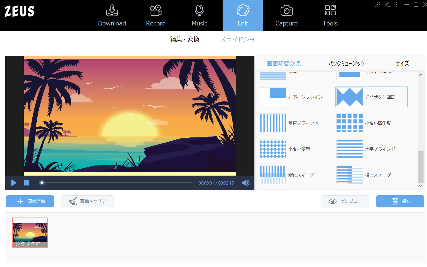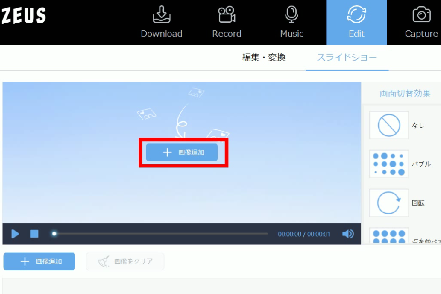 ZEUS EDITにはスライドショー機能があります。