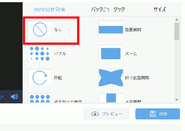※お好みの切替効果がある場合は、効果一覧から選択します。