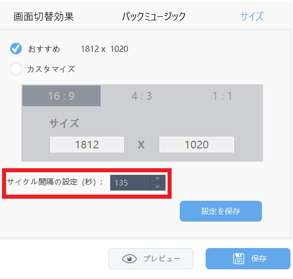 ※複数の画像を追加している場合は、秒数指定を調整してください。