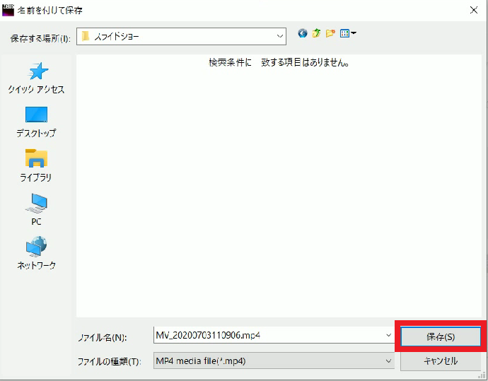 保存が終わったら作成された動画ファイルを確認してみましょう。