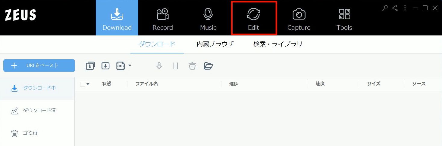 ZEUS シリーズを起動させ、「EDIT」タブをクリックします。