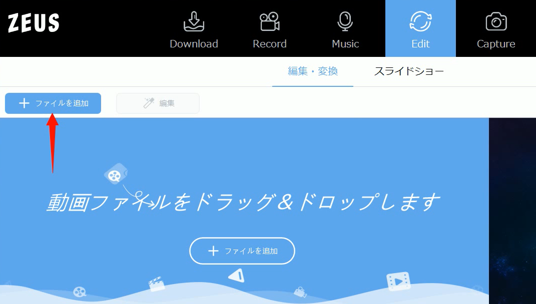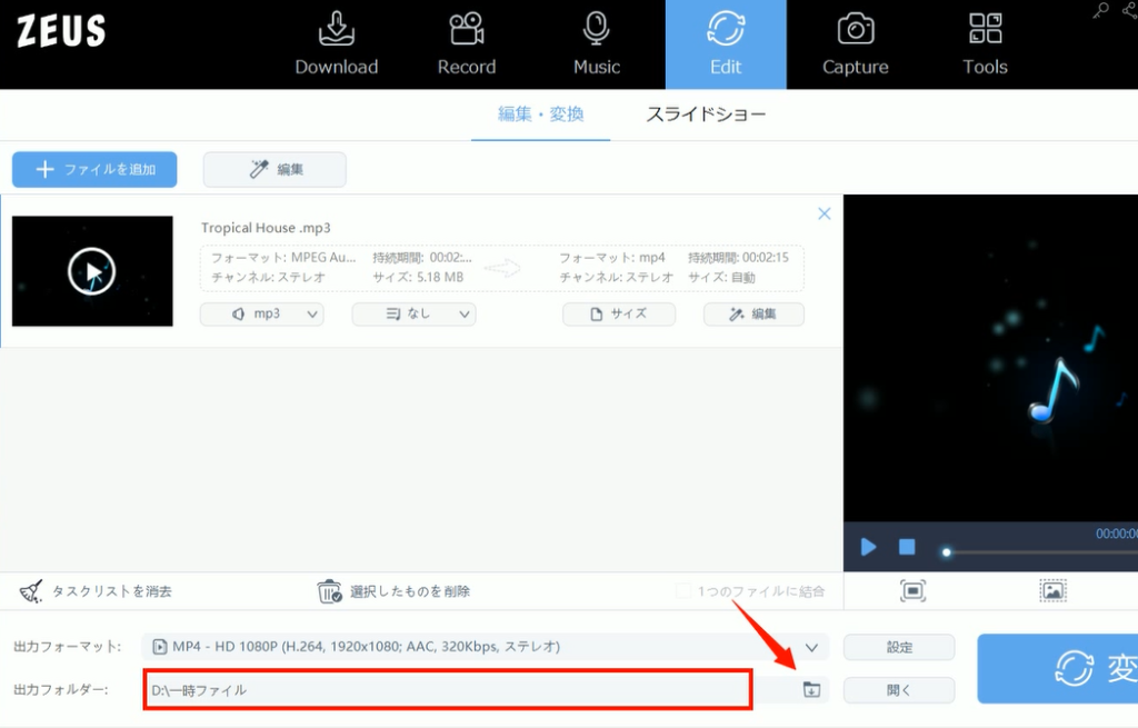 このページでは『ZEUS EDIT』を使って、MP3やWAVファイルなどを動画ファイルに変換する方法をご紹介します。