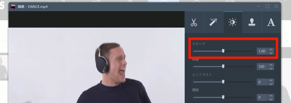 「ZEUS EDIT」 では、動画の再生速度を変更することも可能です。
