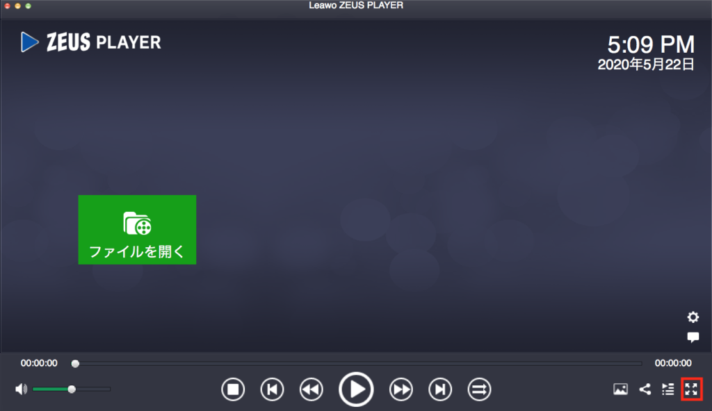 ZEUS PLAYERの右下にある、赤い四角で囲んだマークを押すと、全画面表示になります。